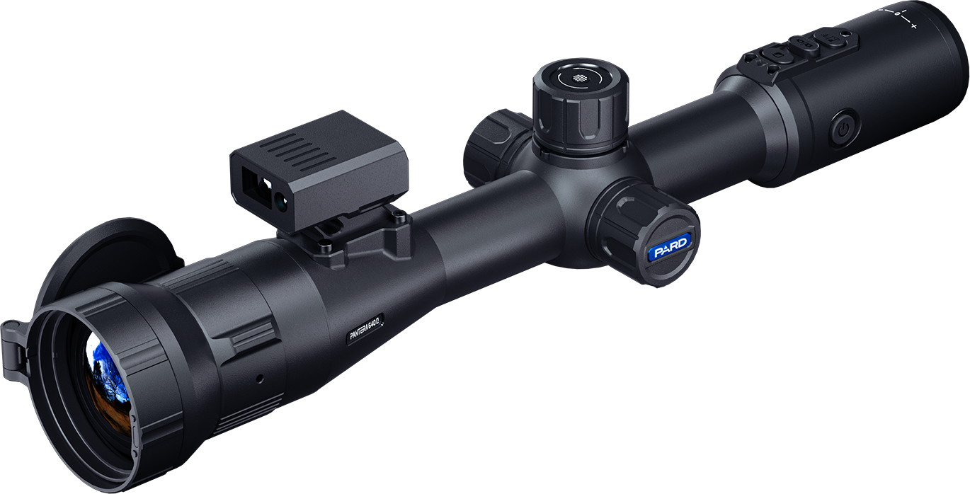 Der Pantera Q überzeugt mit einer hohen thermischen Empfindlichkeit von NETD ≤18 mK, was eine deutlich bessere Bildqualität und das Erkennen kleinster Temperaturunterschiede ermöglicht. Das große 1600 × 1200 Quad-Display liefert gestochen scharfe Bilder mit vielen Details – ideal für präzise Beobachtungen. Der überarbeitete Fokusring ist griffig und lässt sich auch mit Handschuhen einfach bedienen. Ein magnetischer Objektivdeckel sorgt für leises Öffnen und Schließen – perfekt für die Jagd. Die vergrößerten Hoch- und Tief-Tasten sind gut erreichbar und auch bei schlechten Lichtverhältnissen komfortabel nutzbar. Mit dem wechselbaren 21700-Akku bietet das Gerät lange Laufzeiten und lässt sich einfach wieder aufladen. Der integrierte 1000-m-Laser-Entfernungsmesser mit Ballistikrechner macht präzises Anvisieren besonders einfach. Das robuste Gehäuse aus Aluminiumlegierung ist leicht, widerstandsfähig und für den Einsatz unter harten Bedingungen gebaut.